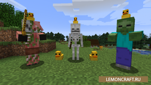 Мод на резиновую уточку Rubber Duck добавит в игру нового, прикольного персонажа, резиновую утку, которая может появится, как на головах зомби, так и на головах скелетов.